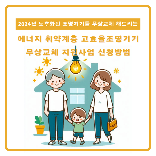 에너지 취약계층 조명기기 무상교체 지원사업은 저소득층과 에너지 취약계층이 보다 안전하고 효율적인 환경에서 생활할 수 있도록 돕는 중요한 복지서비스입니다. 많은 가정에서 노후화된 조명기기를 사용하면서 높은 전기요금을 부담하거나, 조명 불량으로 생활의 불편함을 겪고 있는 경우가 많습니다. 에너지 취약계층은 이러한 문제를 해결하기 위해 새로운 고효율 조명기기를 설치하고 싶어도, 초기 비용 부담 때문에 현실적으로 어렵습니다. 이 사업은 에너지 효율이 높은 LED 조명기기로 무상 교체해 주어 전기요금을 절감할 수 있도록 돕고, 동시에 밝고 안전한 생활환경을 제공함으로써 생활의 질을 높입니다. 결과적으로 이 사업은 에너지 비용 절감 효과와 함께 생활 안전과 편리성을 동시에 제공하여 취약계층의 경제적 부담을 덜어주는 큰 장점을 갖고 있습니다. 오늘은 에너지 취약계층 조명기기 무상교체 지원사업의 지원대상, 지원내용 등을 정리해 보았습니다. 신청방법은 다음과 같습니다.