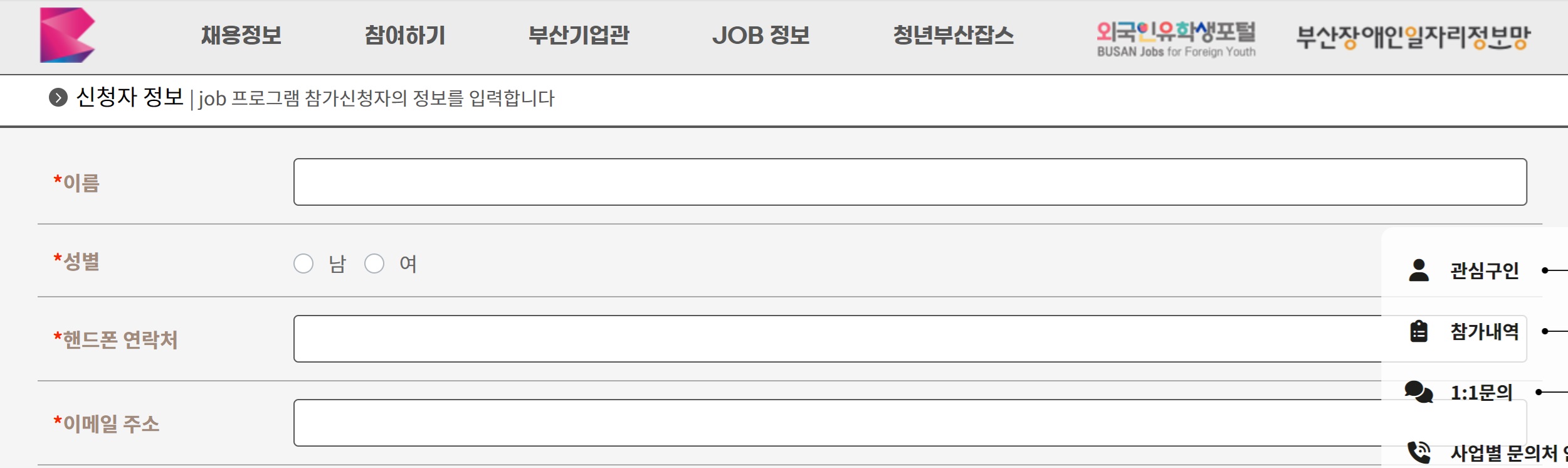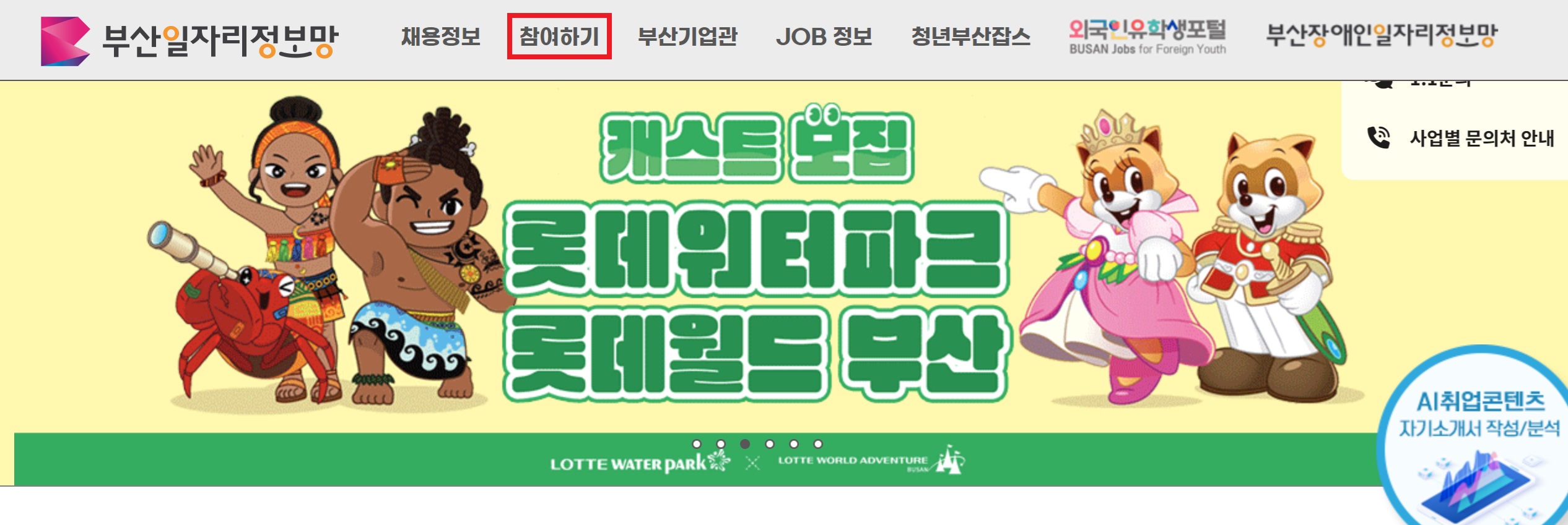 (1) 부산일자리정보망 홈페이지 접속한 후, [참여하기] 클릭하기