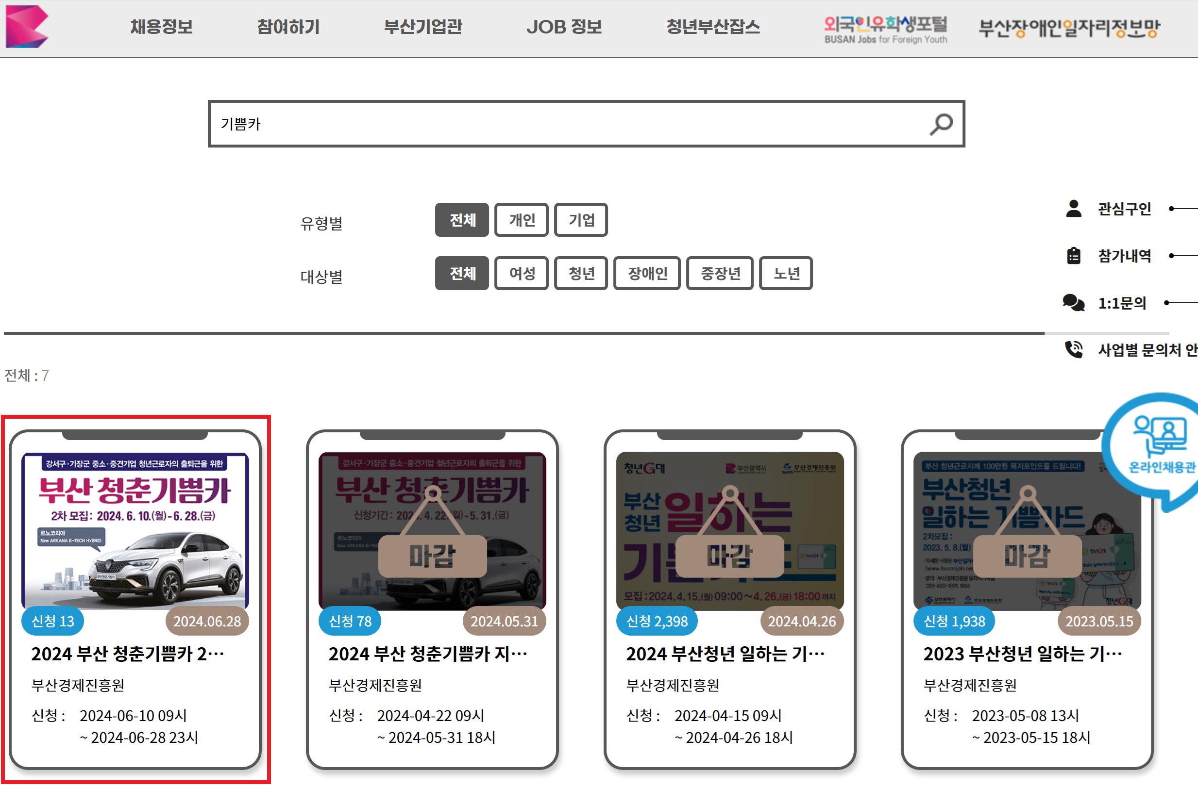 (3) 부산 청춘카 지원사업 [공고문 배너] 클릭하기 (또는 검색)