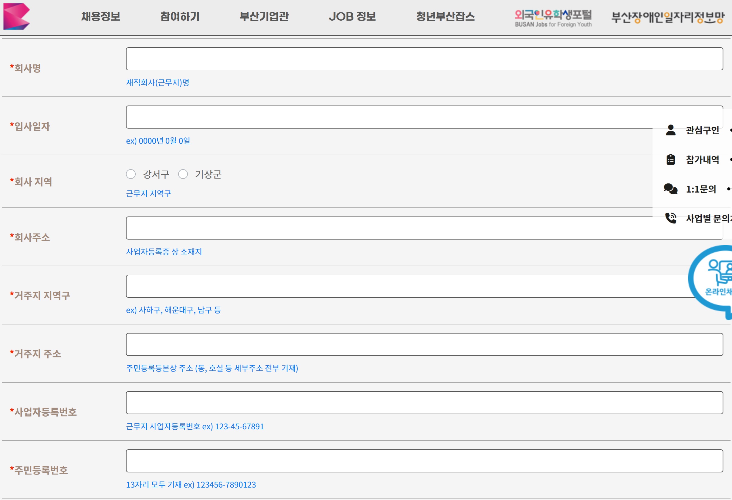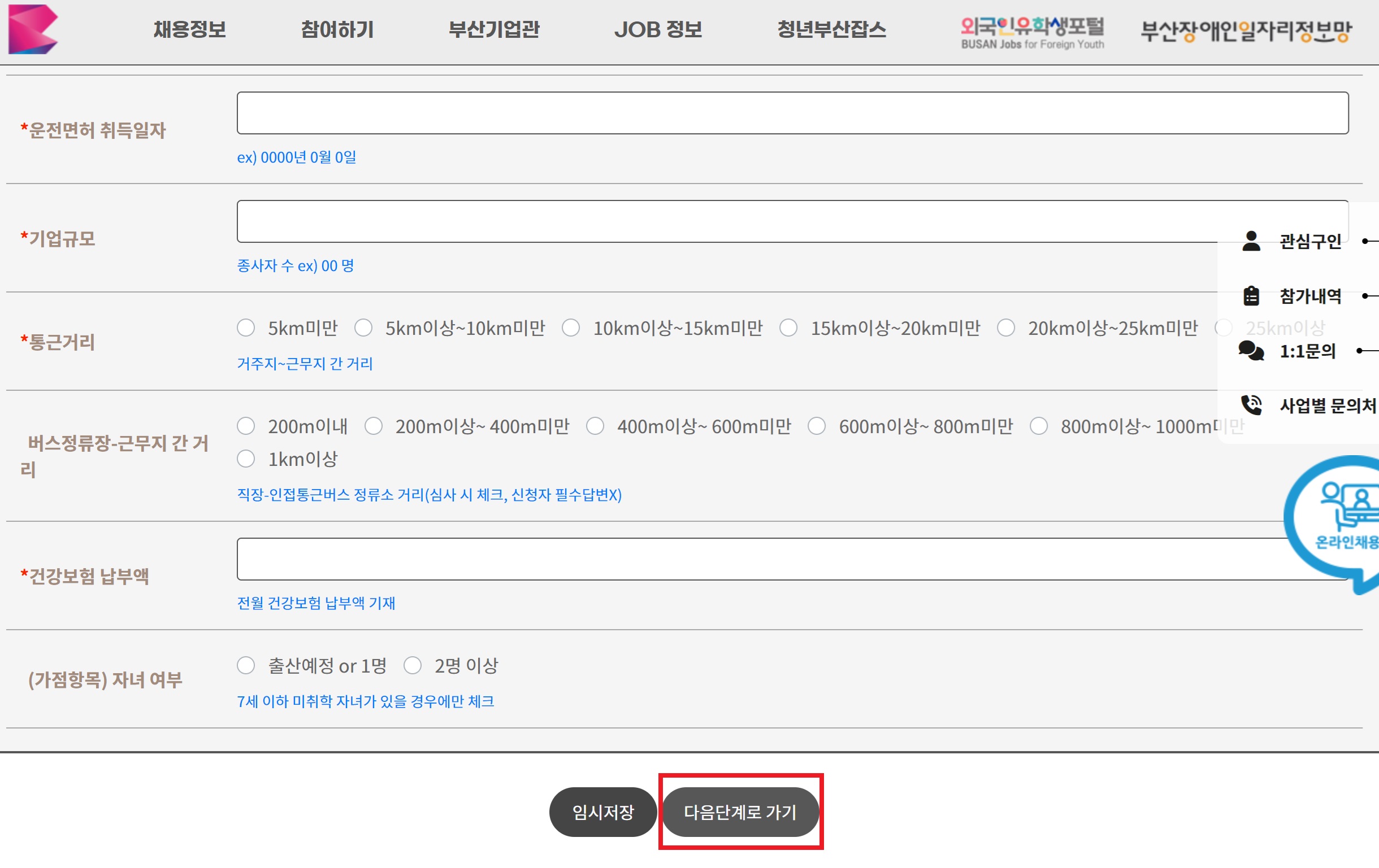 ● 부산일자리정보망 개인회원 가입(로그인) 후 온라인 신청