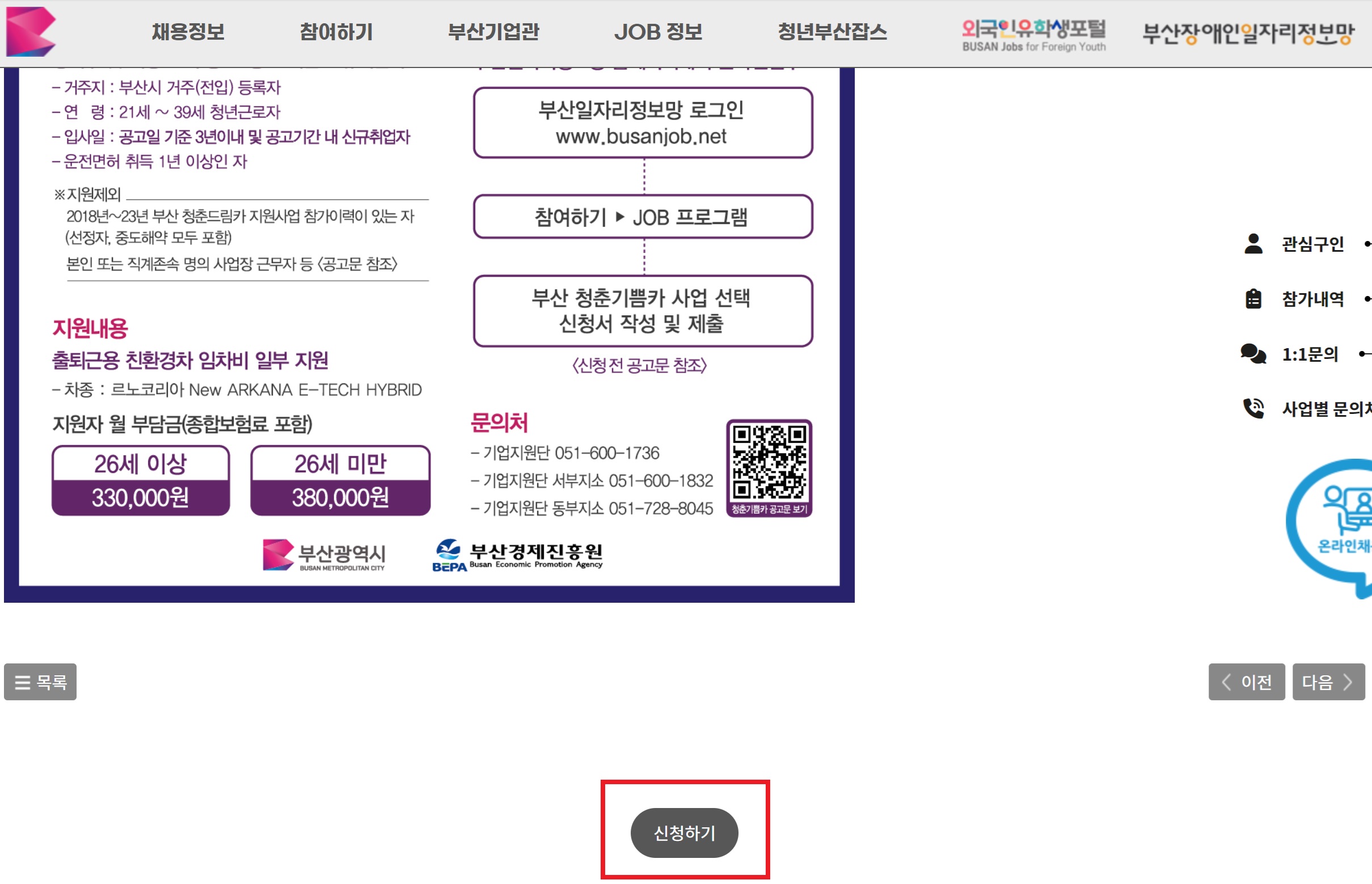 2024년 부산 청춘 기쁨카는 부산시와 부산경제진흥원은 강서구 및 기장군 내 중소·중견 기업에 근무하는 청년 근로자에게 하이브리드차량 임차비 일부를 지원하여 교통편이 취약한 지역 내 청년 취업을 촉진하고, 장기근속을 유도하기 위한 사업입니다. 오늘은 부산 청춘 기쁨카 지원 사업 2차 모집의 지원대상, 필수서류, 평가기준 등 정리해 보았습니다. 신청방법은 다음과 같습니다.