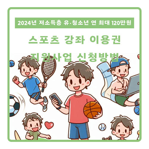 스포츠강좌이용권 사업은 저소득층 가정의 아동과 청소년에게 다양한 스포츠 활동에 참여할 기회를 제공하여, 신체적 건강 증진과 사회적 통합을 도모하는 중요한 지원사업입니다. 경제적 어려움으로 인해 스포츠 활동에 접근하지 못하는 많은 청소년이 건강과 여가활동의 불균형을 경험하고 있습니다. 이러한 상황에서 스포츠강좌이용권은 스포츠 교육을 통한 신체 발달뿐만 아니라, 사회성 향상, 스트레스 해소, 팀워크와 리더십 등의 다양한 효과를 기대할 수 있게 합니다. 오늘은 스포츠강좌이용권 지원사업의 지원대상, 선정기준, 지원내용 등을 정리해 보았습니다. 신청방법은 다음과 같습니다.