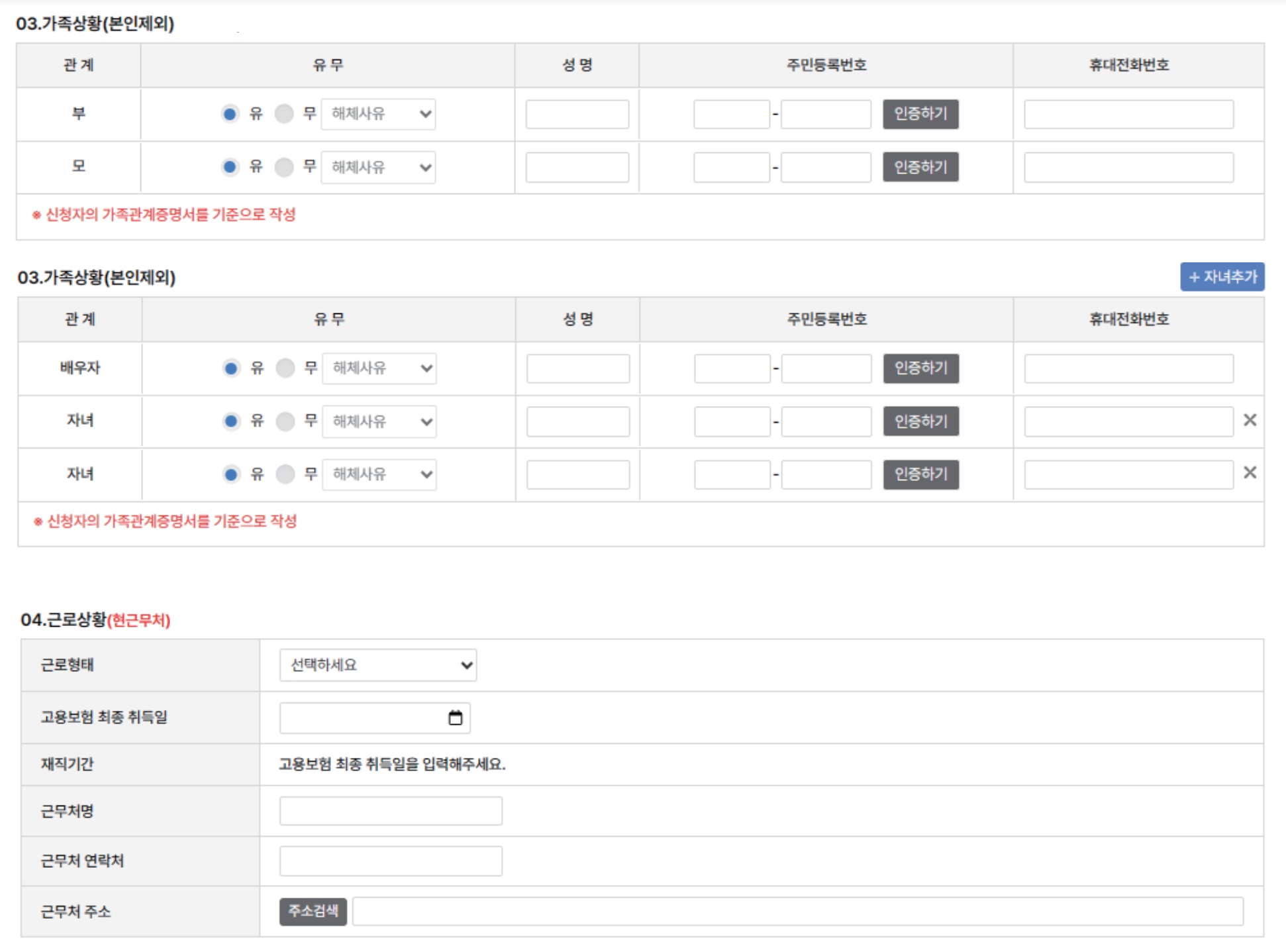 (4) [현 근무처] 기준으로 작성합니다.