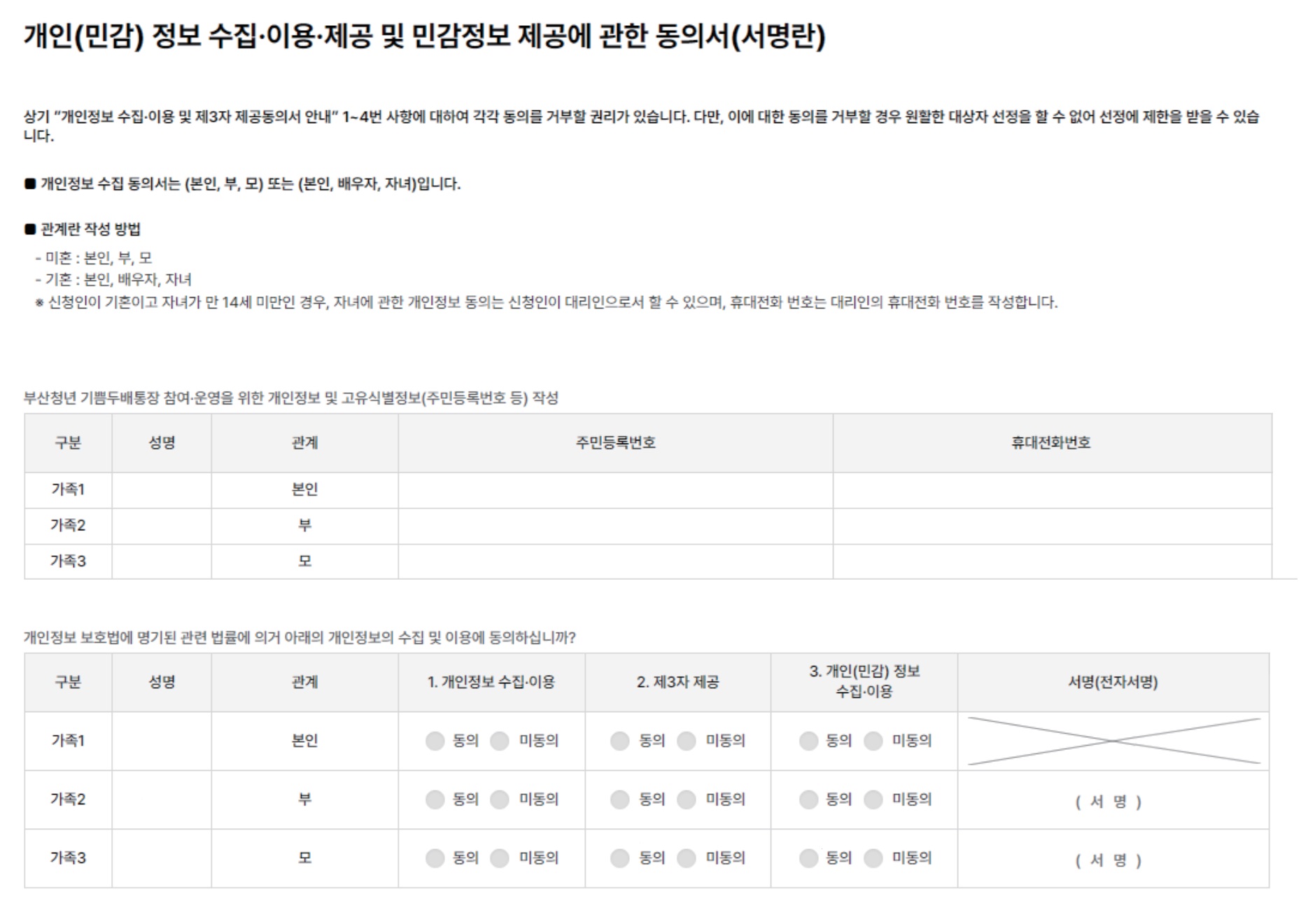 (6) [개인정보 수집· 이용·제공] 및 [민감정보] 제공에 동의한 후, [서명]합니다.