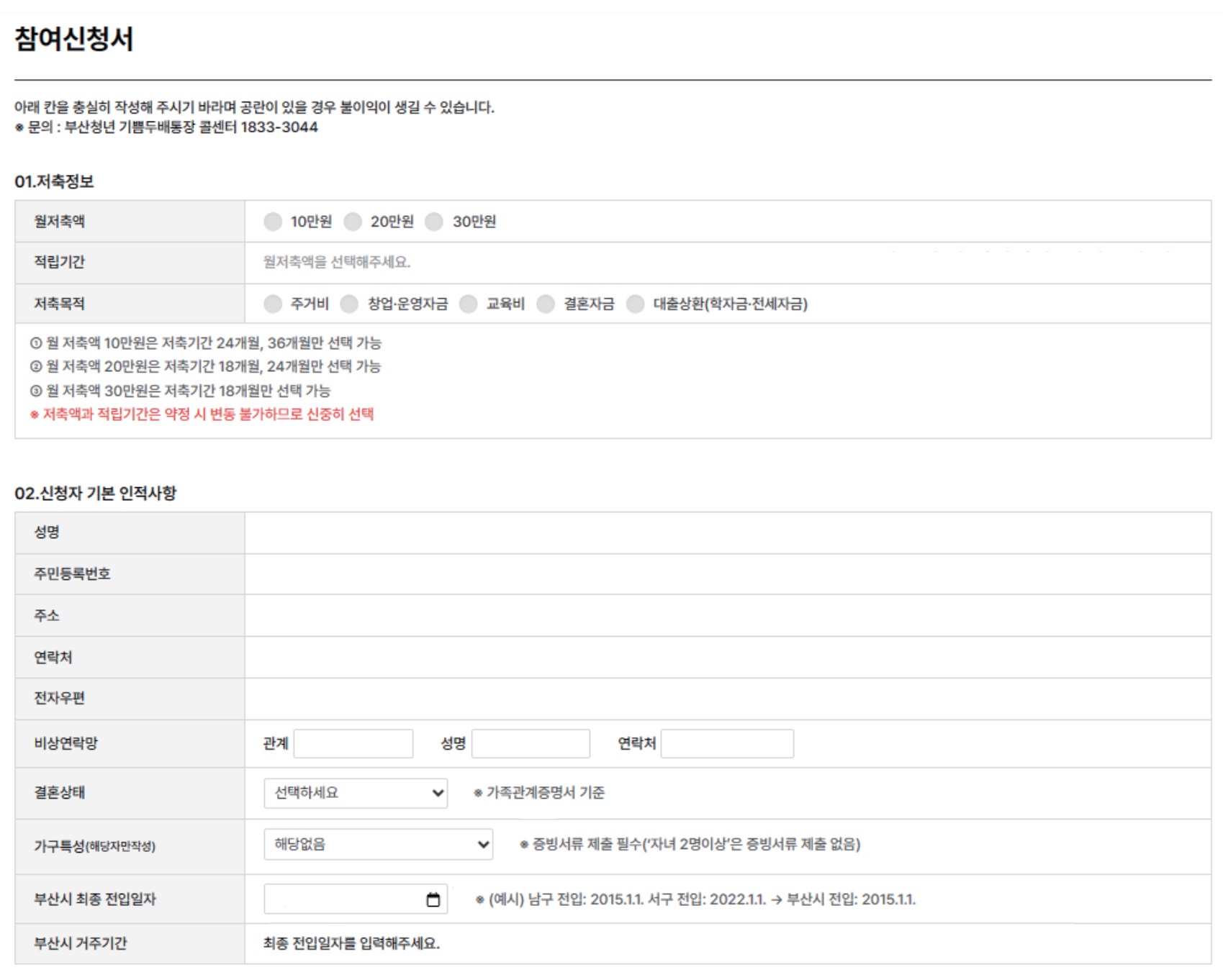 ※ 참가자 임의로 적립급 인출, 해지, 담보제공 등을 방지하기 위해 부산경제진흥원에서 " 참가자 저축통장" 관리
