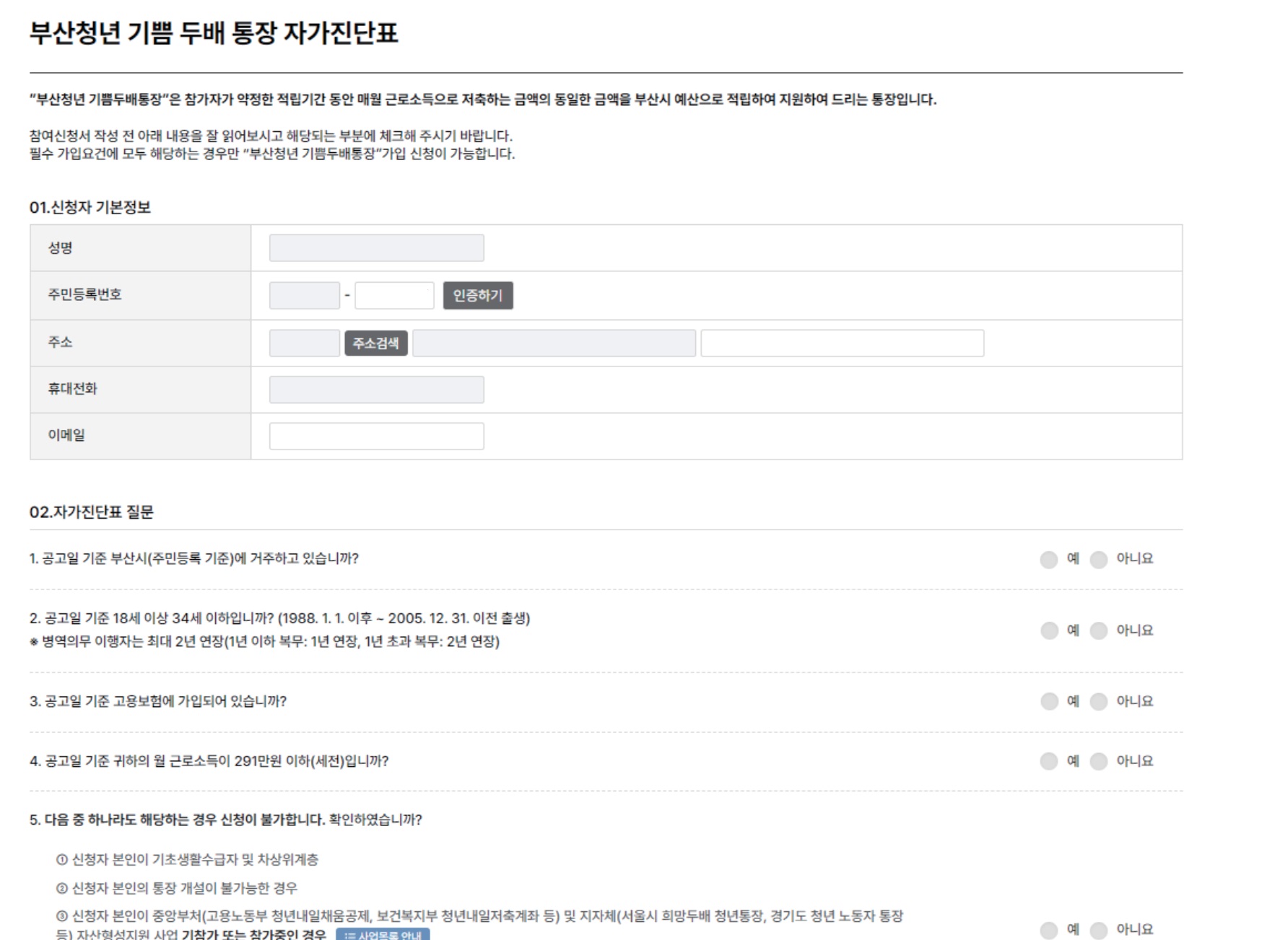 ● 거주지 : 주민등록 기준 부산광역시 거주 중인 자