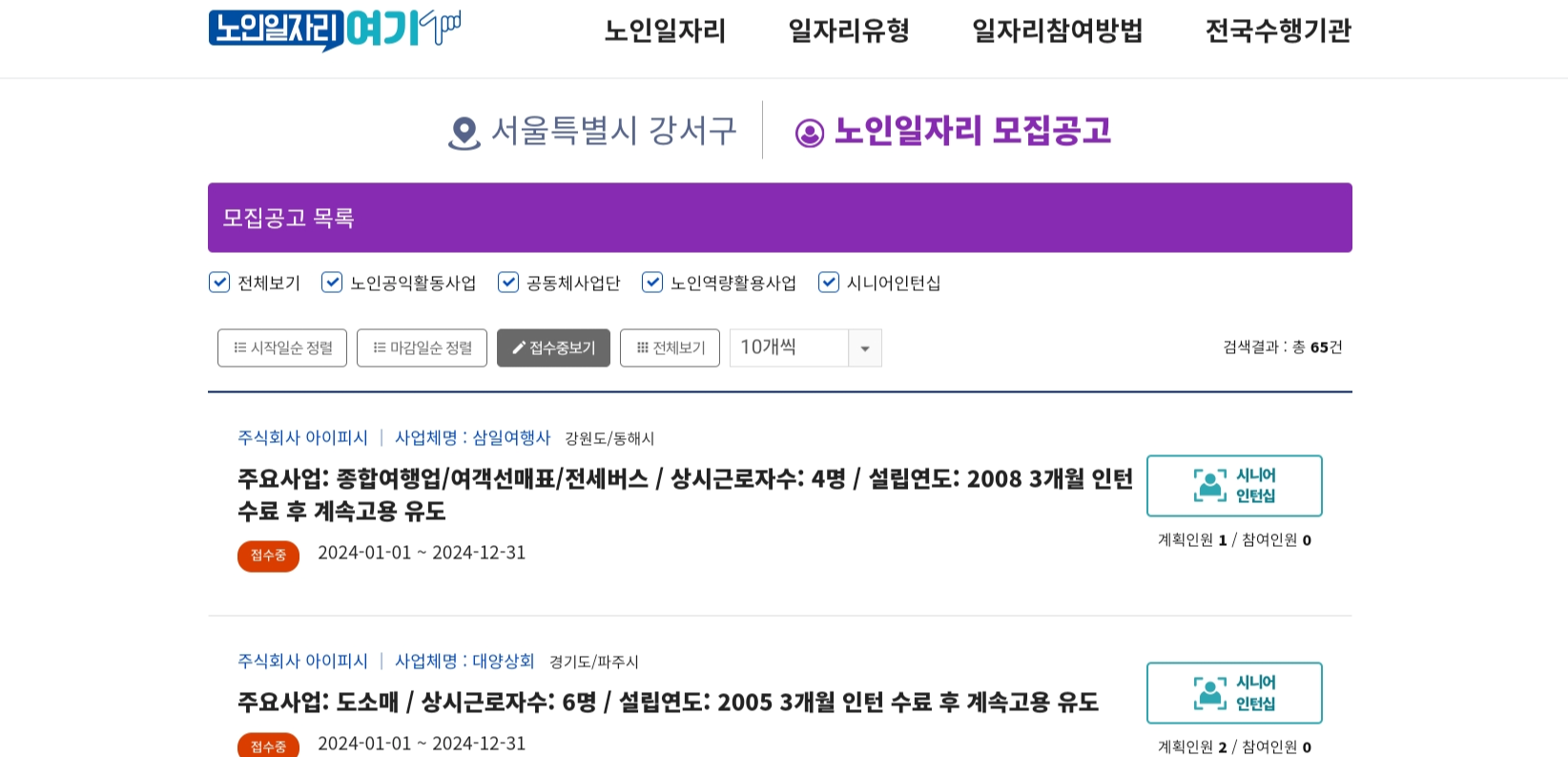2) 검색 페이지 아래 지역구의 '노인일자리 모집공고' 확인