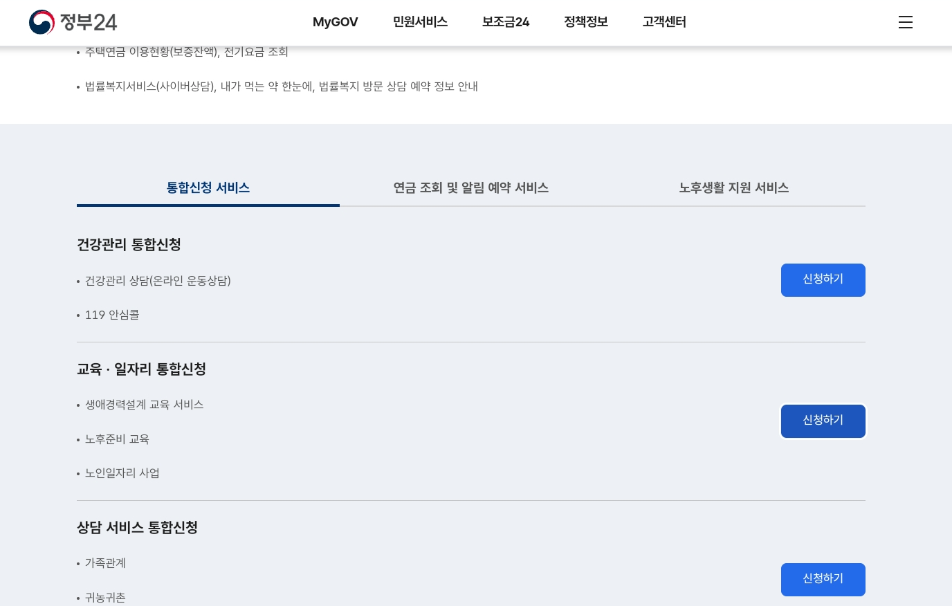 노인일자리 및 사회활동 지원사업 신청하기