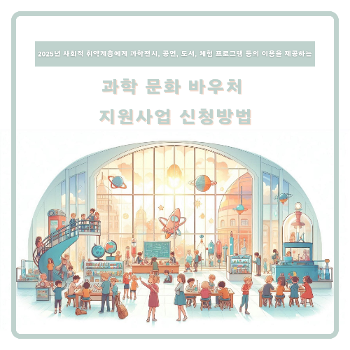 현대 사회에서 과학기술은 단순한 학문을 넘어 일상생활과 밀접하게 연결된 필수 요소로 자리 잡았습니다. 그러나 경제적·지역적 이유로 인해 과학문화 활동을 접하기 어려운 계층이 여전히 존재하며, 이로 인해 과학기술에 대한 관심과 기회 격차가 발생하고 있습니다. 이러한 문제를 해결하기 위해 과학기술정보통신부와 한국과학창의재단은 과학문화바우처 지원사업을 운영하고 있습니다. 이 사업은 기초생활수급자 및 차상위계층을 포함한 다양한 소외계층에게 과학 전시, 공연, 도서, 체험 프로그램 등을 무료로 제공함으로써 과학문화의 접근성을 확대하고, 과학기술에 대한 관심을 높이는 것을 목표로 합니다. 2025년에도 지속될 이 사업은 많은 사람들이 과학을 쉽고 재미있게 경험할 수 있는 기회를 제공할 예정이며, 이에 대한 신청 방법과 혜택을 미리 알아두는 것이 중요합니다.