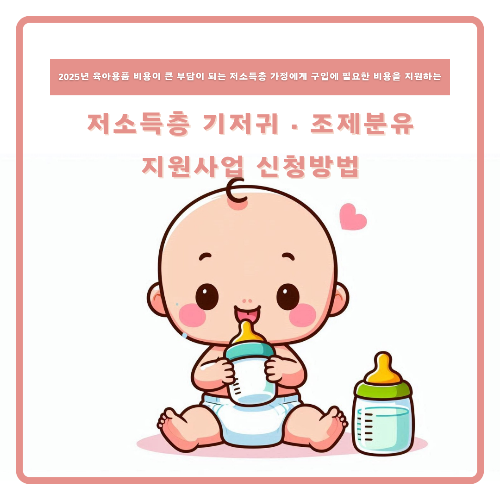 출산과 육아는 많은 기쁨을 주지만, 경제적인 부담도 함께 따릅니다. 특히 저소득층 가정에서는 기저귀와 조제분유와 같은 필수 육아용품 비용이 큰 부담이 될 수 있습니다. 이에 정부는 경제적 어려움을 겪는 가정을 지원하기 위해 2025년 저소득층 기저귀·조제분유 지원사업을 운영하고 있습니다. 이 사업은 기저귀와 조제분유 구입에 필요한 비용을 지원하여 아이가 건강하게 성장할 수 있도록 돕는 것을 목표로 합니다. 국민기초생활보장 수급 가구, 차상위계층, 한부모가정뿐만 아니라 일정 소득 기준을 충족하는 다자녀 가구 및 장애인 부모 가구도 지원 대상에 포함됩니다. 국민행복카드를 통해 바우처 형태로 지원금을 지급받아 지정된 가맹점에서 기저귀와 조제분유를 구입할 수 있으며, 기저귀·조제분유 지원사업의 대상, 신청 방법, 가맹점 정보 등을 자세히 안내하겠습니다.